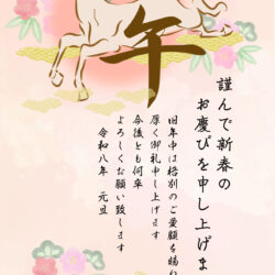 跳ね馬と松竹梅、和風背景の午年年賀状