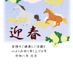跳ねる白うさぎと和柄背景 卯年デザイン年賀状