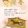 午年の年はね馬、菊などの和風背景デザインンの午年年賀状テンプレートです。